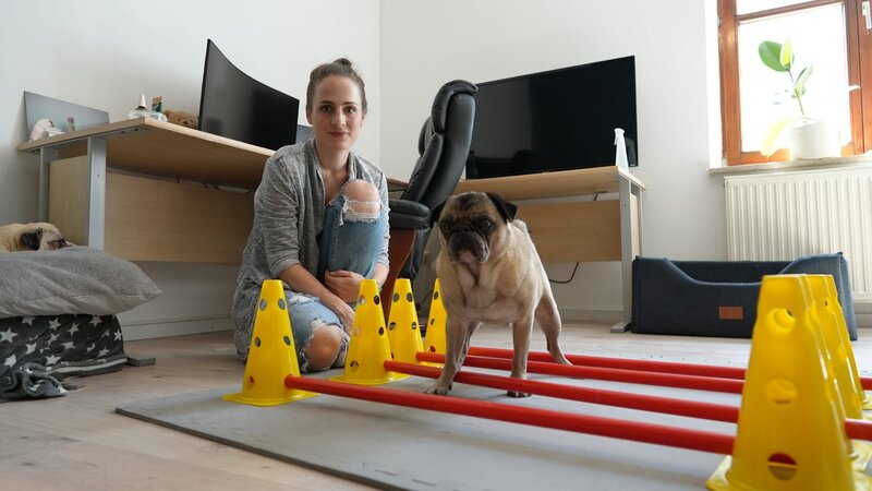 Training für ein schmerzfreieres Leben: Daniela Raila hat sich bei der Physiotherapie einige Übungen für ihren Mops abgeschaut.