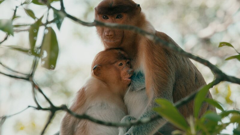 Nasenaffe mit Jungtier +++ Die Verwendung des sendungsbezogenen Materials ist nur mit dem Hinweis und Verlinkung auf RTL+ gestattet. +++