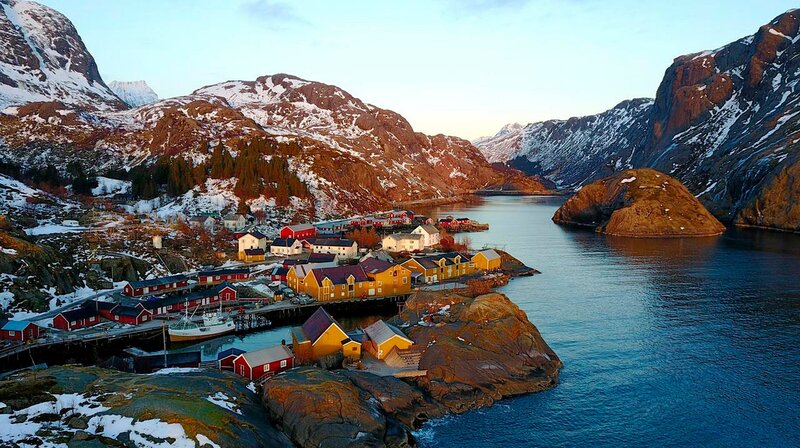 Das denkmalgeschützte Fischerdorf Nusfjord bezaubert durch seine bunten Fischerhütten.