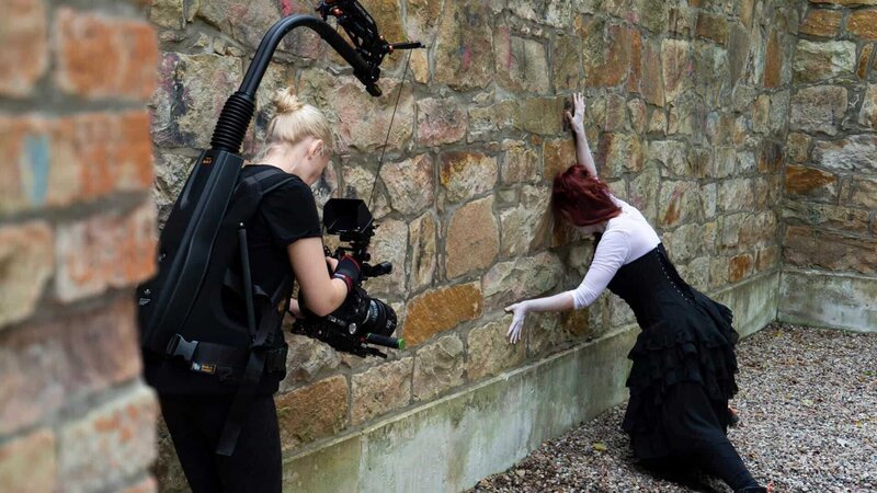 Dreh am Mausoleum Graf Carl von Alten in Hemmingen mit der Butoh-Tänzerin Maren Konn.