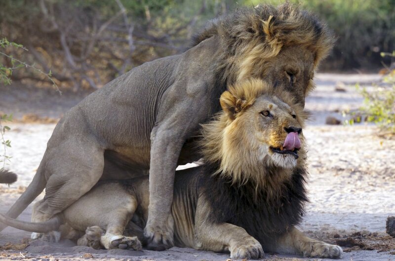 Zwei „schmusende“ Löwenmännchen;
