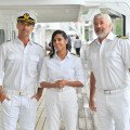 „Das Traumschiff“: (v. l.) Kapitän Max Parger (Florian Silbereisen), Dr. Jessica Delgado (Collien Fernandes) und Staff-Kapitän Martin Grimm (Daniel Morgenroth)